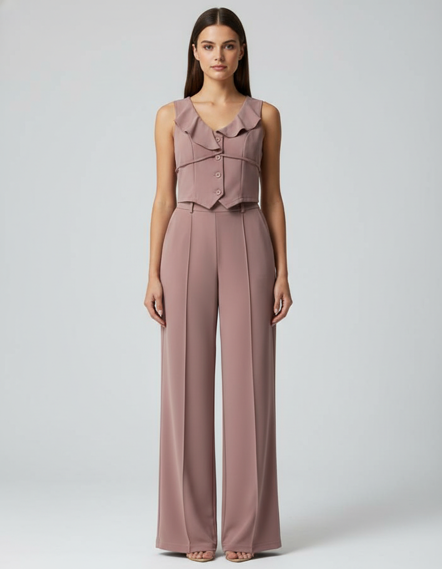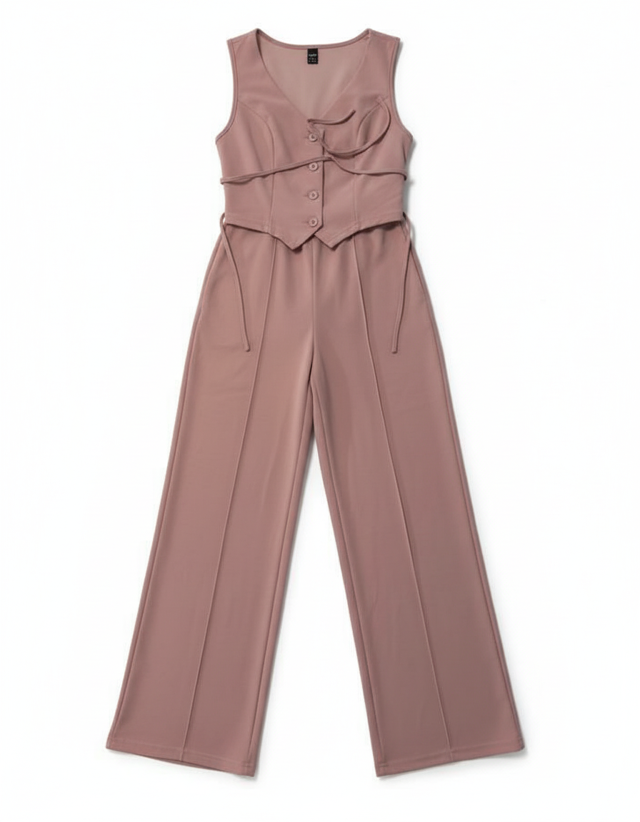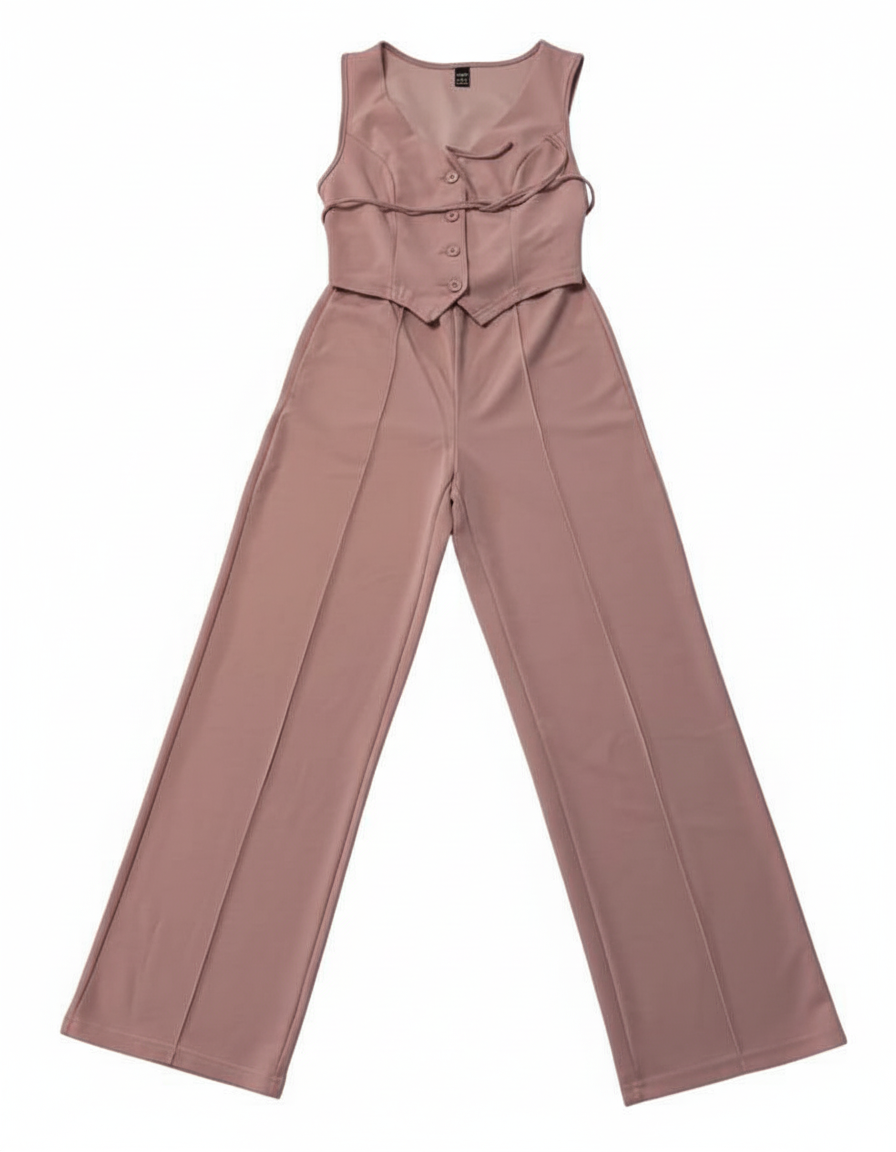 Dusty Rose Two-Piece Vest and Wide Leg Pant Co-ord Set