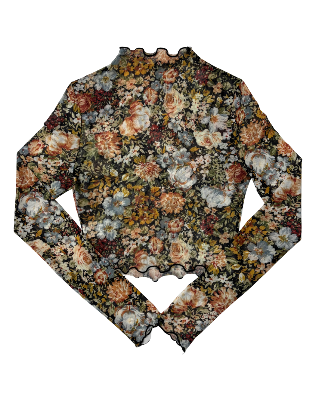Product form Vintage Floral Mesh See-Through Ruffle Top - XS Measurements (inches) Pit to Pit: 15.2Length: 16.5Brand Size: NA Dhs35.00 Quantity Add to cart Washed & Ready to WearFree shipping on all orders above 100 AEDNext day delivery