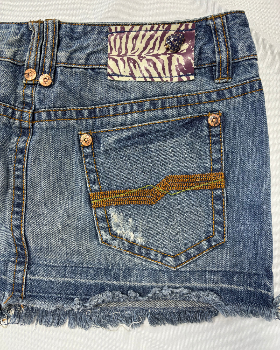Product form Sicko Distressed Blue Raw Hem Denim Mini Skirt - XL | Waist: 34" Measurements:Waist: 34Outseam: 10.2 Brand Size: 38 Dhs35.00 Quantity Add to cart Washed & Ready to WearFree shipping on all orders above 100 AEDNext day delivery