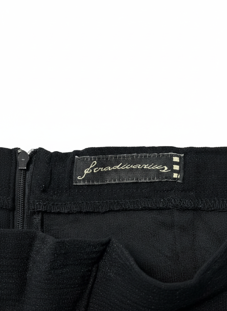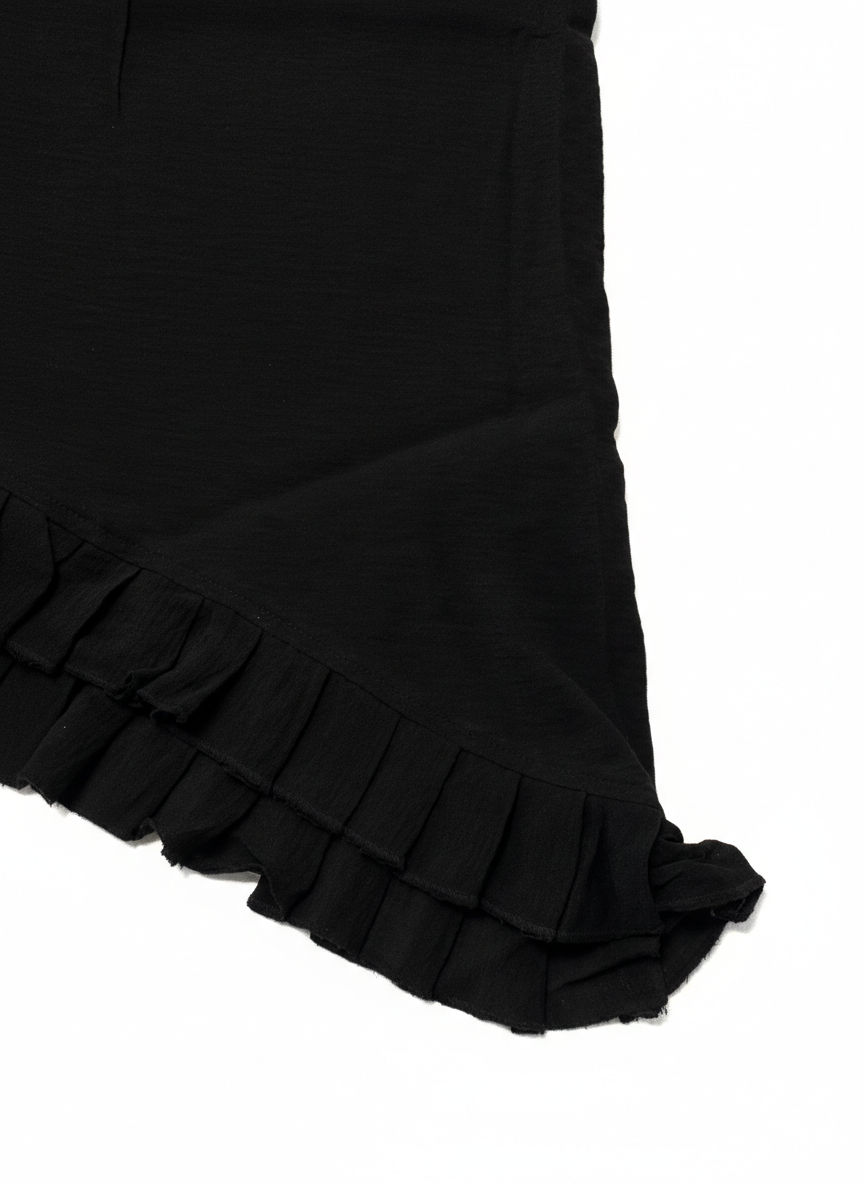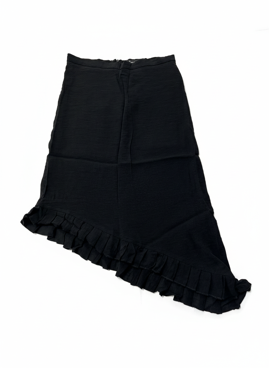 Stradivarius Black Asymmetrical Ruffle Hem Midi Skirt