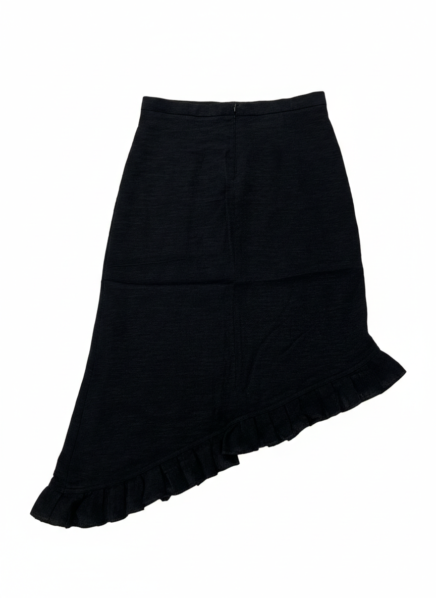 Elevate your wardrobe with this stylish midi skirt, featuring a unique asymmetrical hemline detailed with soft ruffles for a feminine... Read more