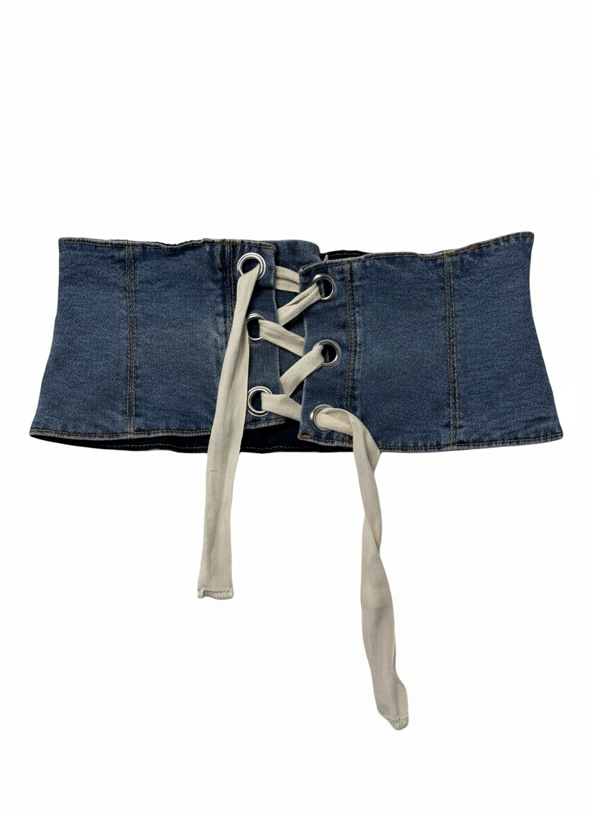 Elevate your wardrobe with this chic denim corset belt, designed to accentuate your waistline effortlessly. Featuring a classic lace-up front... Read more