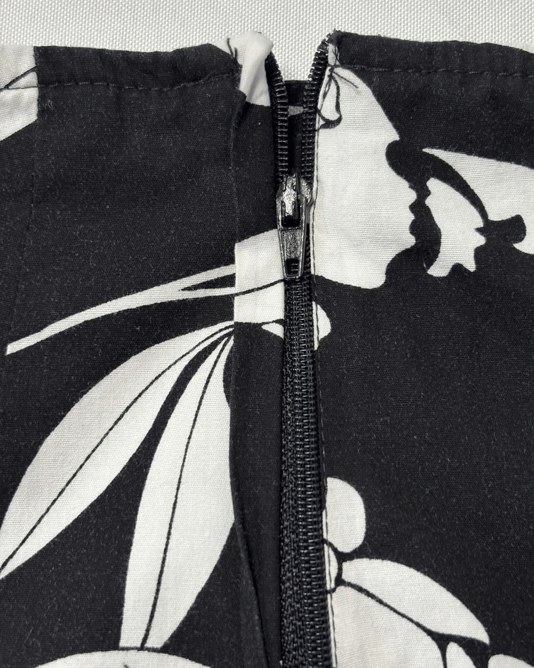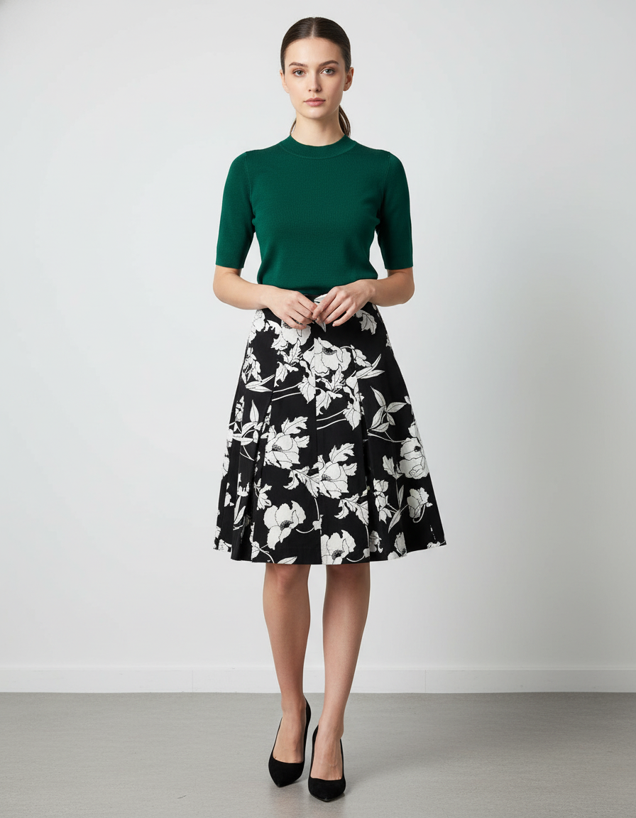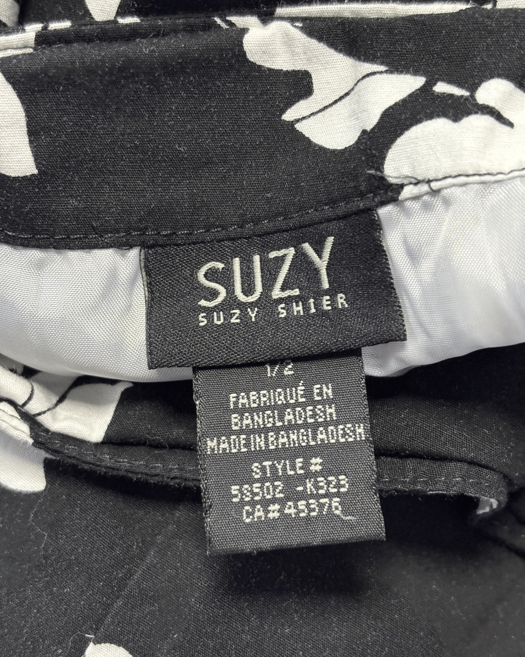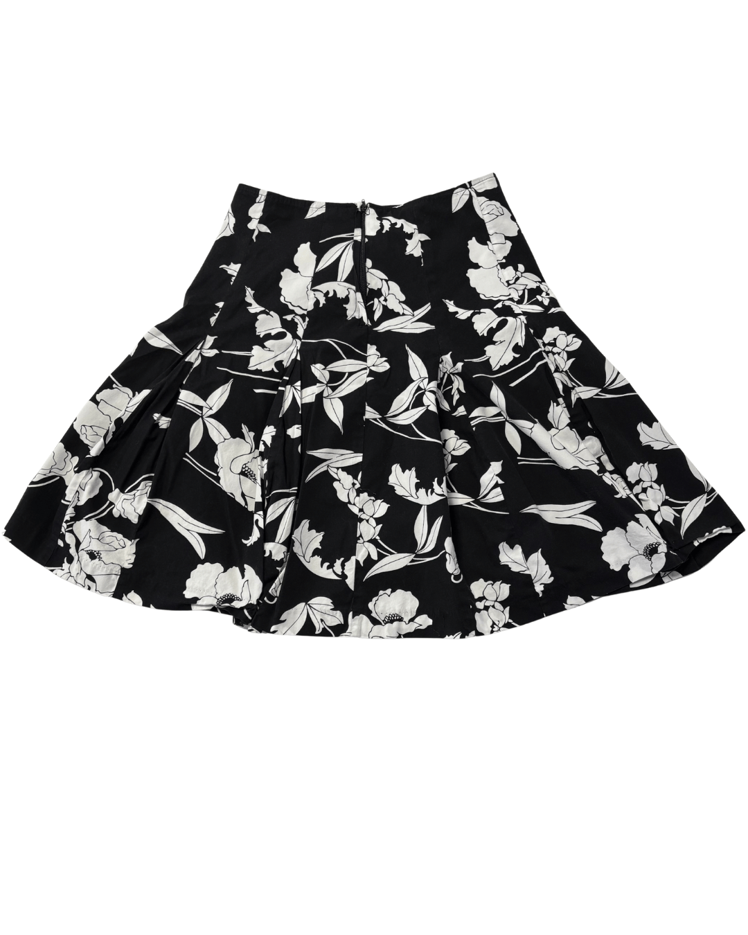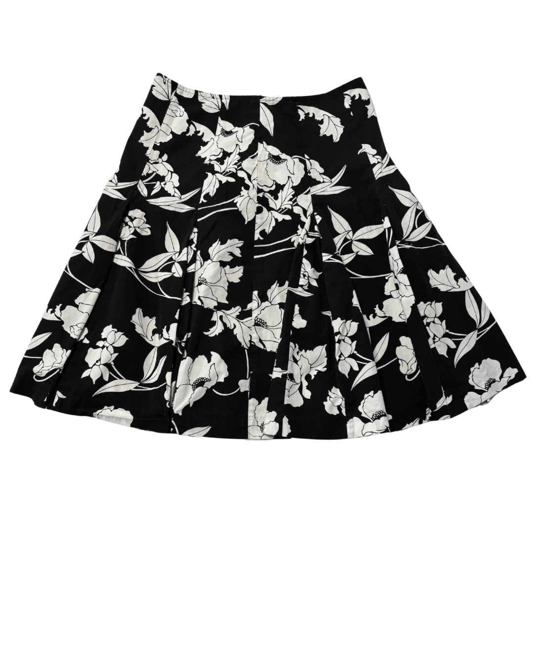 Suzy Shier Black & White Floral Pleated A-Line Mini Skirt