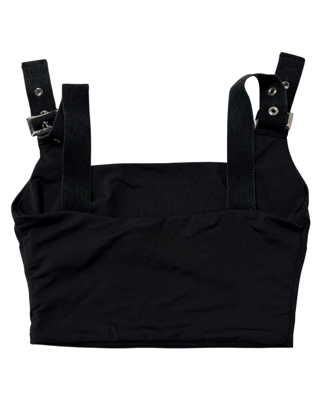 Tiger Mist Black Buckle Strap Grommet Crop Top