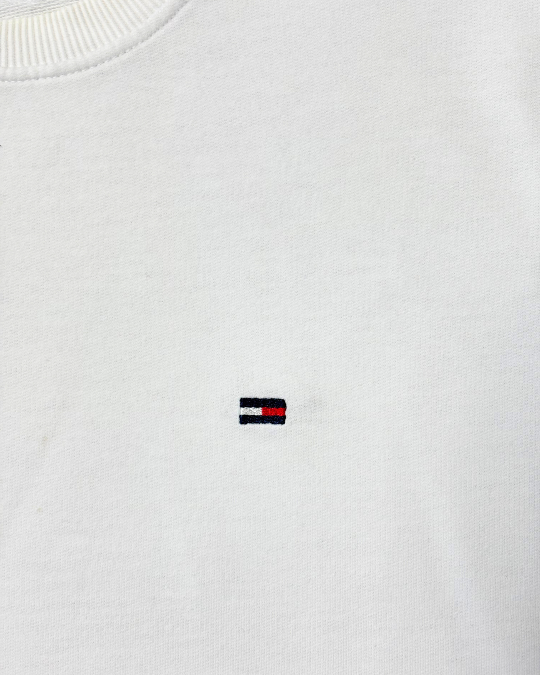 Tommy Hilfiger Classic White Embroidered Flag Logo Crewneck Sweatshirt
