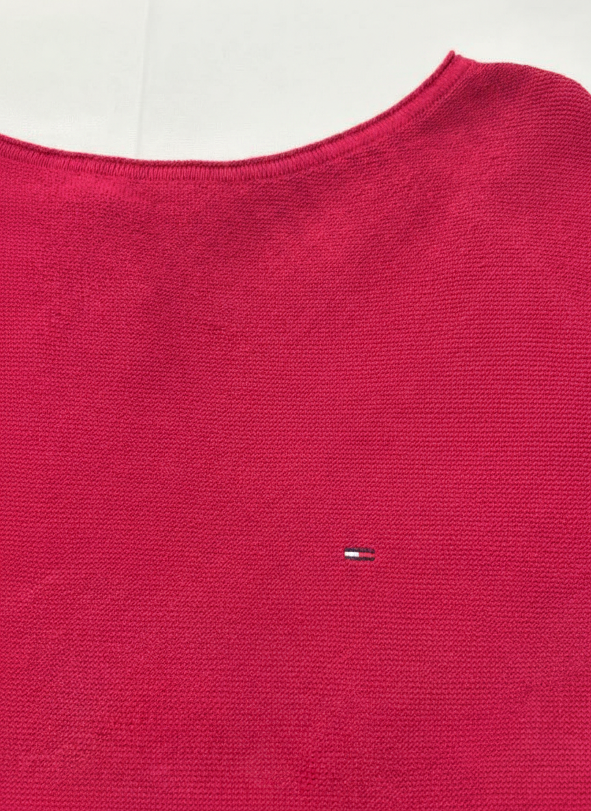 Tommy Hilfiger Denim Red Textured High-Low Pullover Sweater
