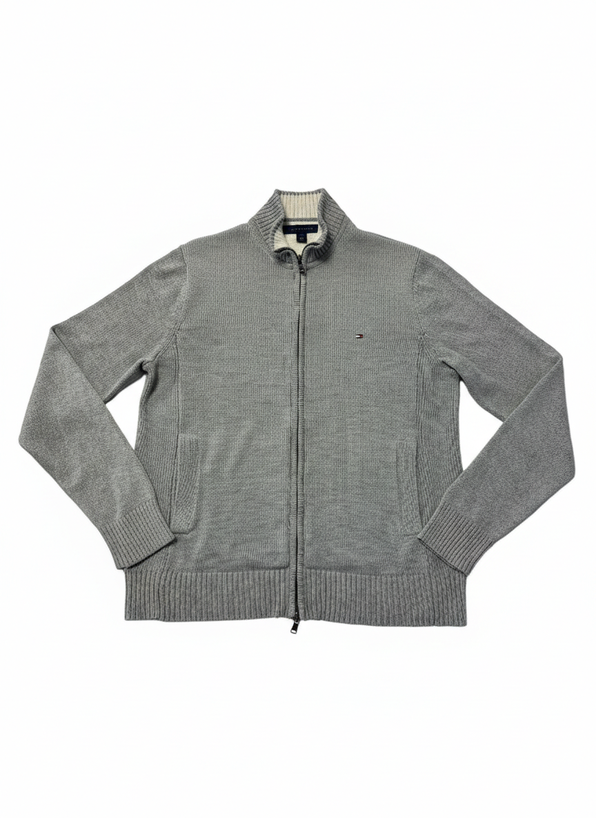 Tommy Hilfiger Grey Full-Zip Cotton Knit Sweater
