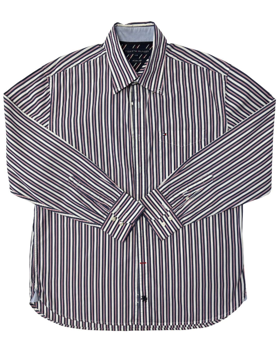 Sold Out Product form Tommy Hilfiger Navy Blue & Red Striped Long-Sleeve Dress Shirt Measurements (inches) Pit to Pit: 23Length: 30.2 Brand Size: L Dhs55.00 Quantity Out of stock Washed & Ready to WearFree shipping on all orders above 100 AEDNext day delivery
