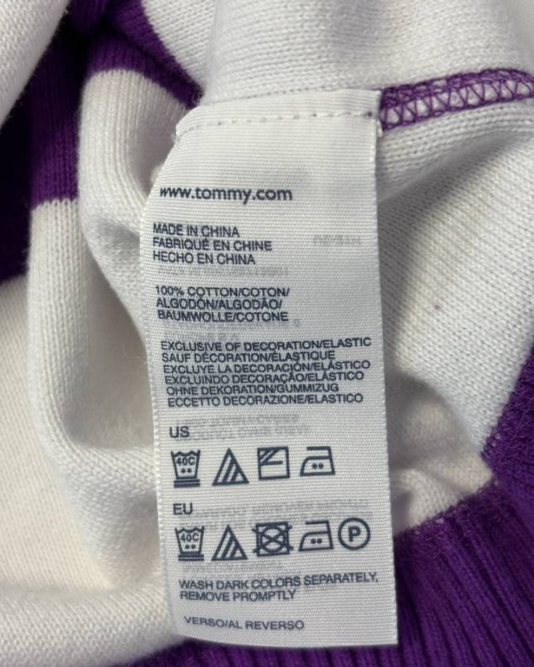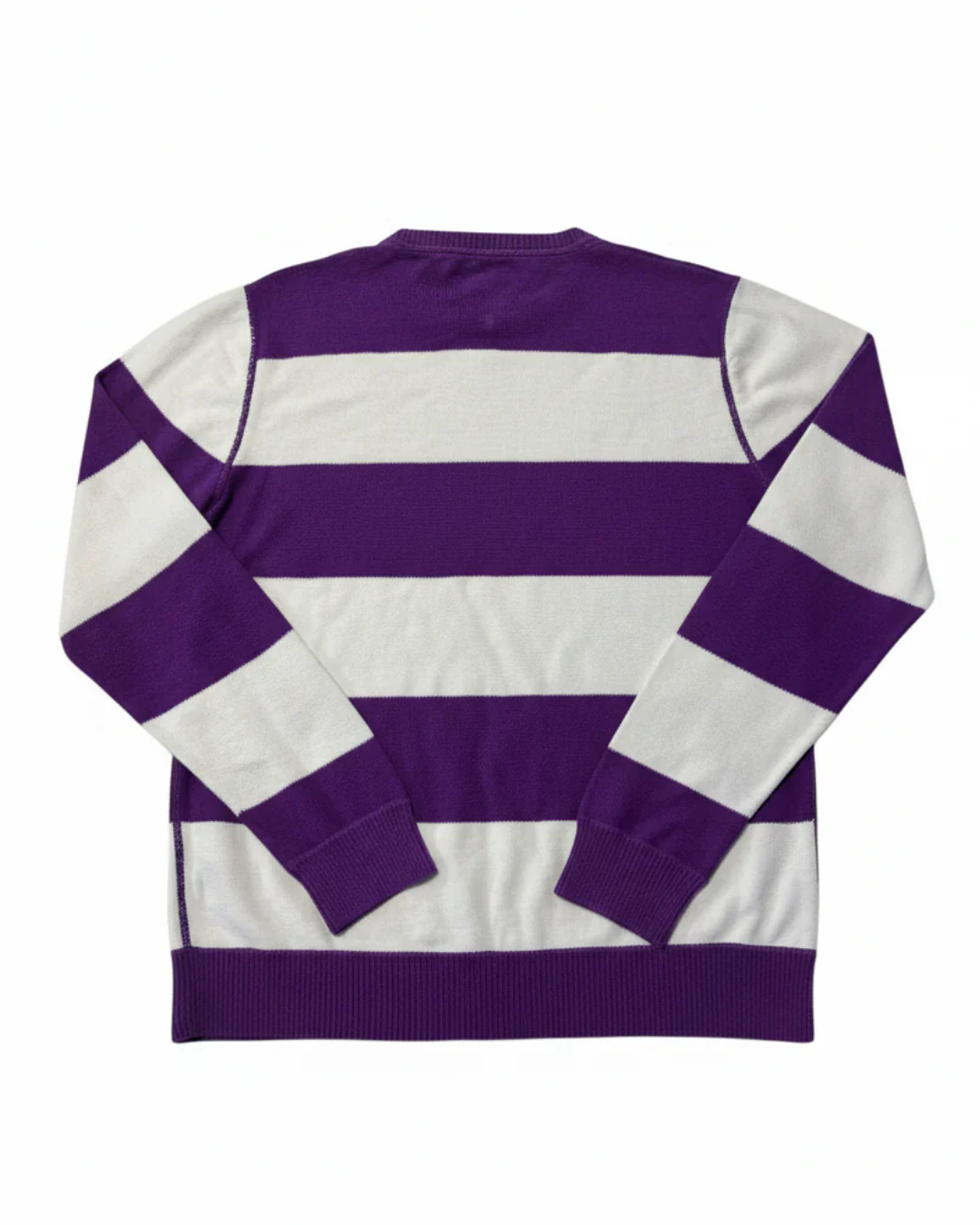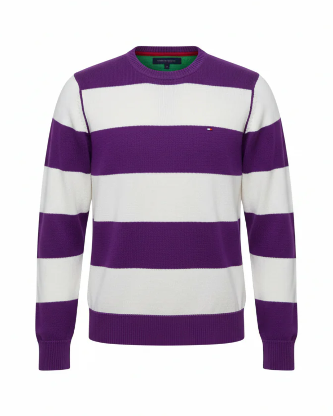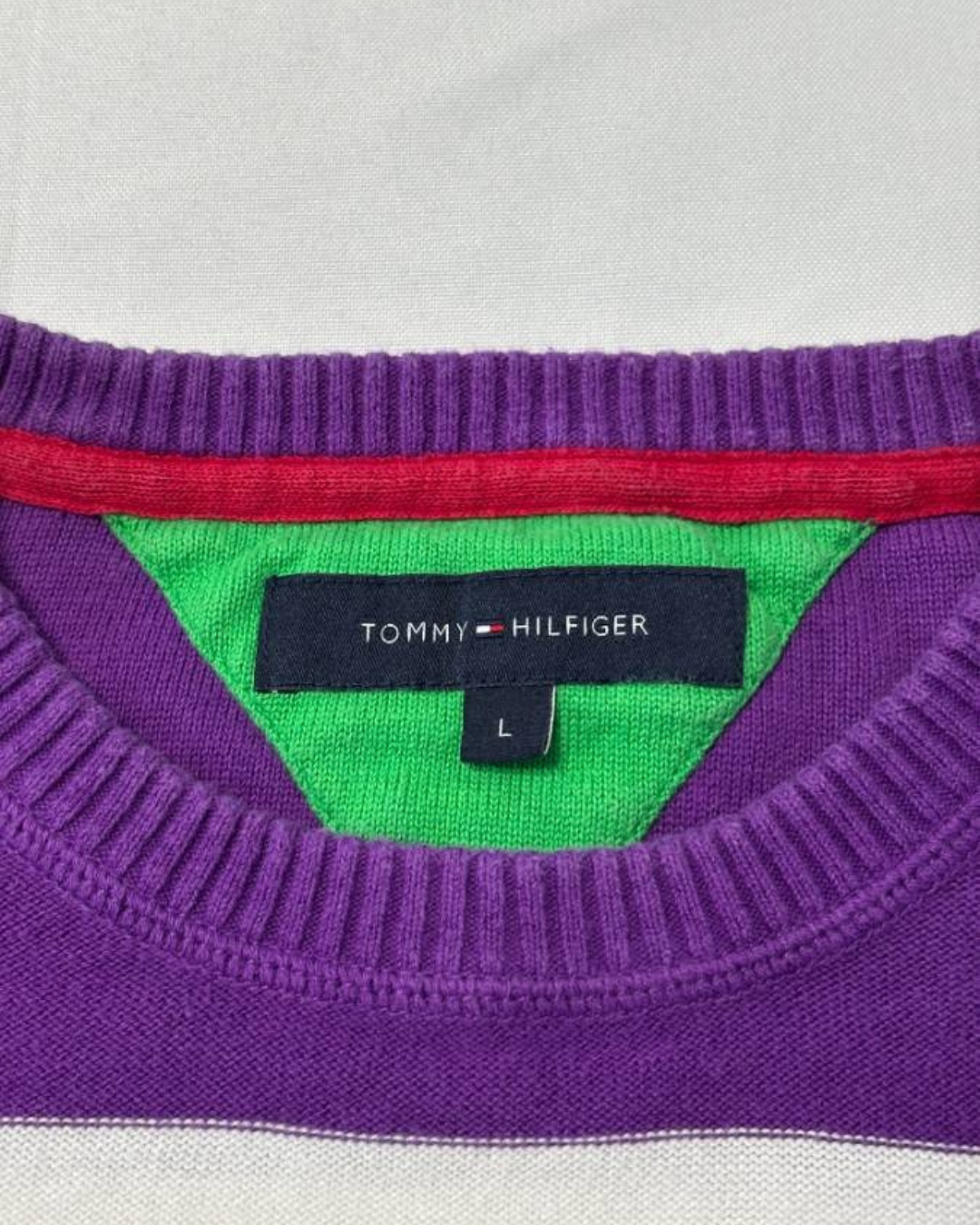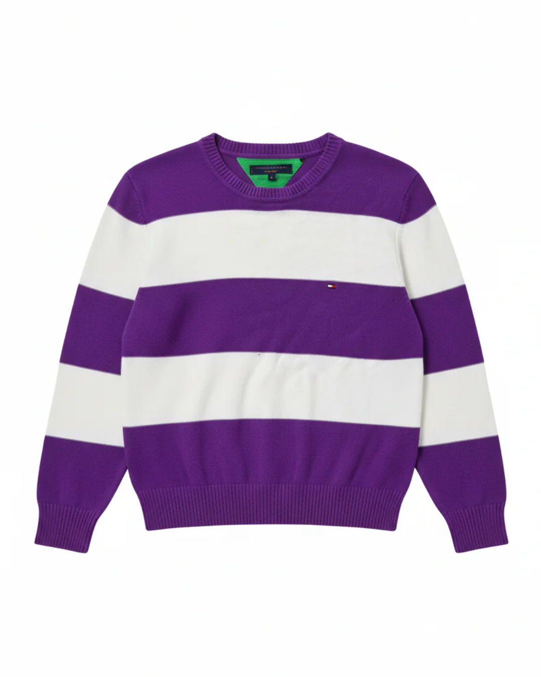 Tommy Hilfiger Purple and White Striped Crewneck Knit Sweater