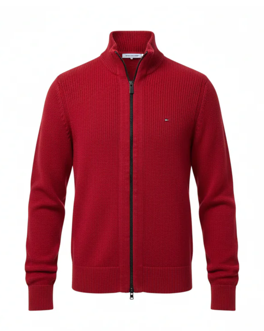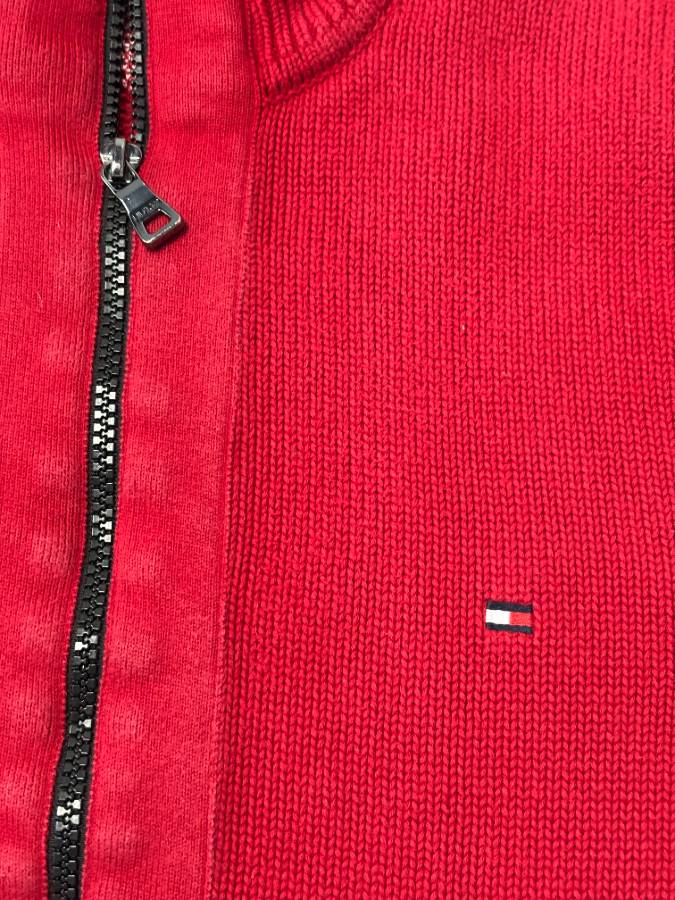 Tommy Hilfiger Red Full Zip Premium Cotton Sweater