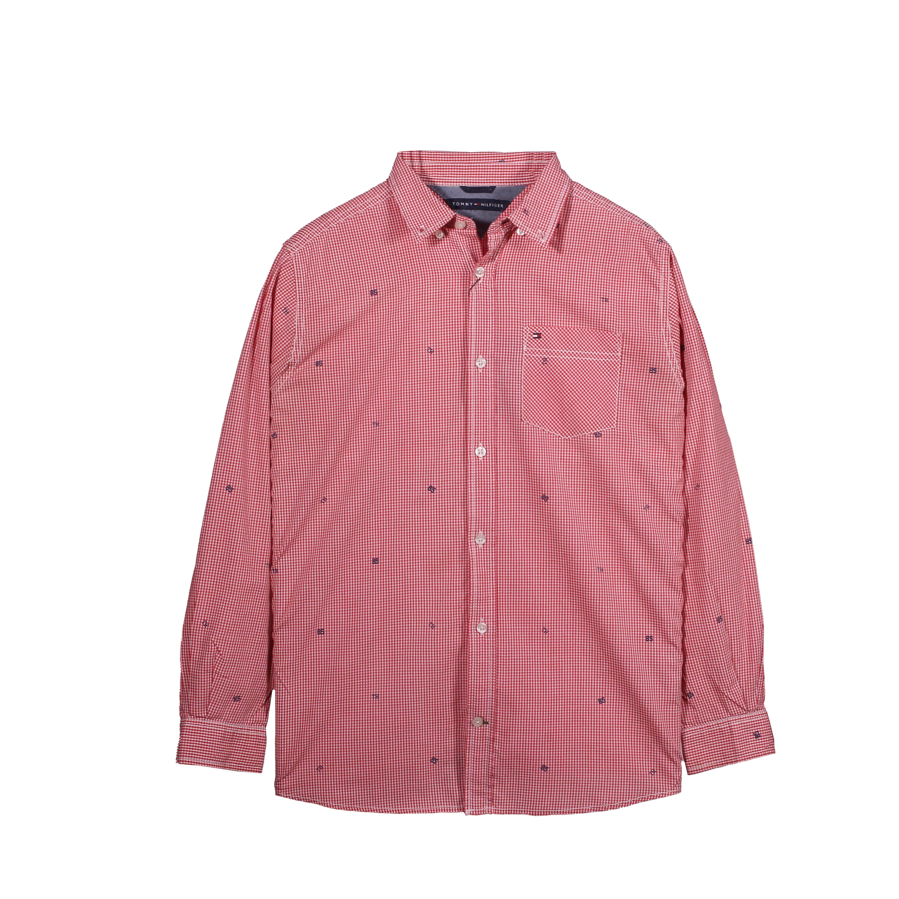 Tommy Hilfiger Red Micro Check Embroidered Button-Down Shirt