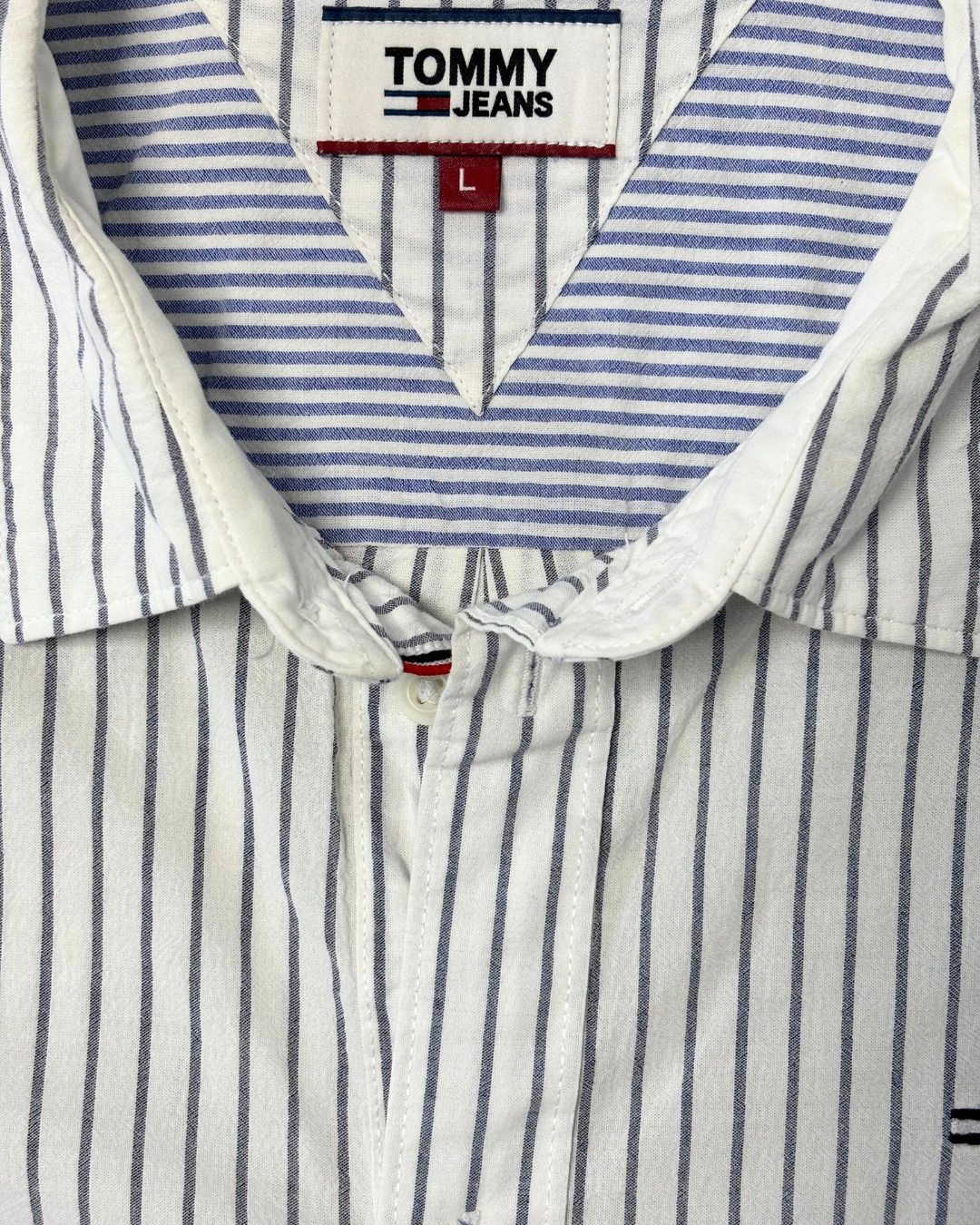 Product form Tommy Jeans White & Navy Striped Regular Fit Button-Down Shirt Measurements (inches) Pit to Pit: 21Length: 30.5 Brand Size: L Dhs55.00 Quantity Add to cart Washed & Ready to WearFree shipping on all orders above 100 AEDNext day delivery