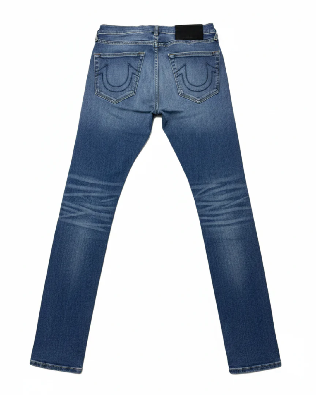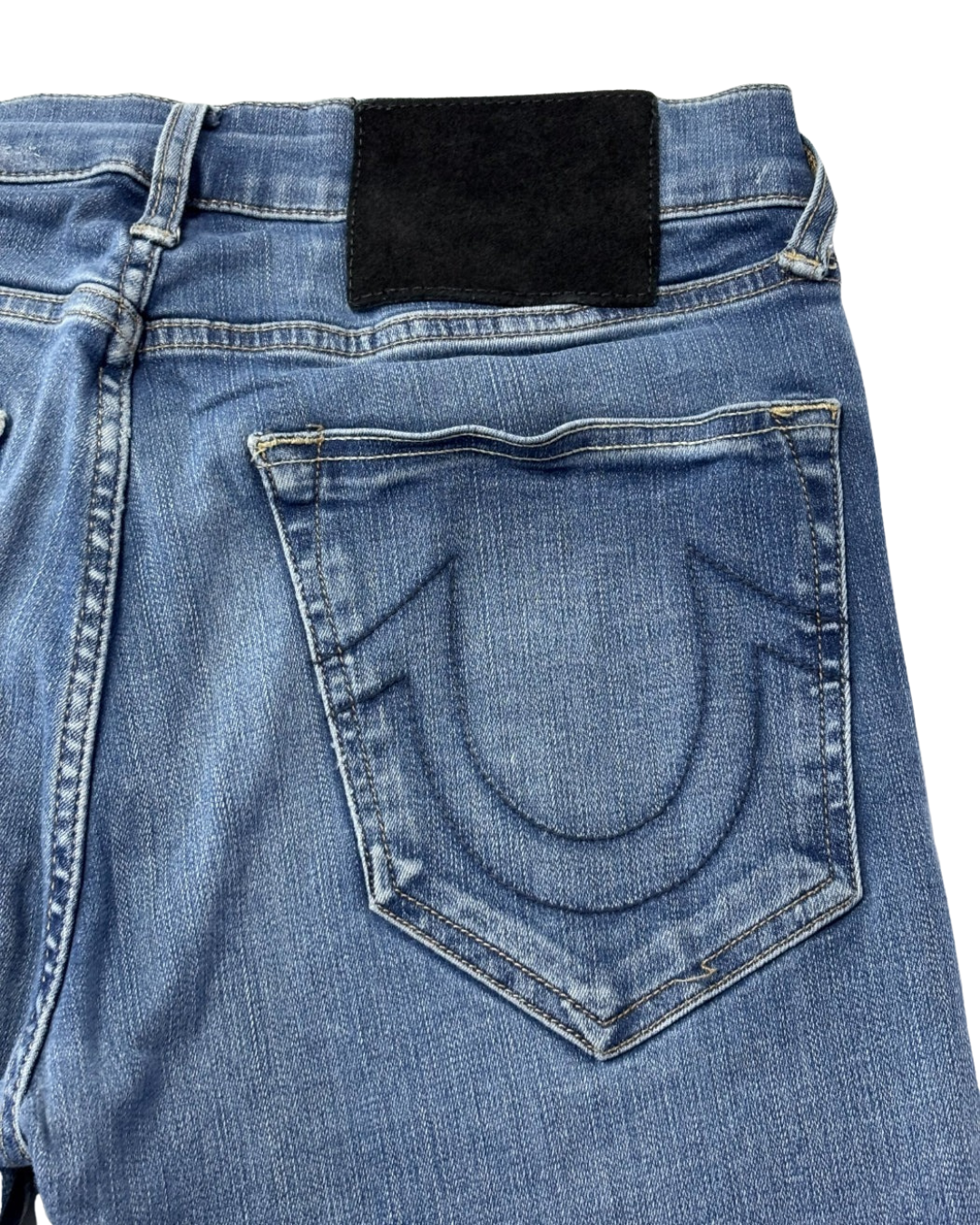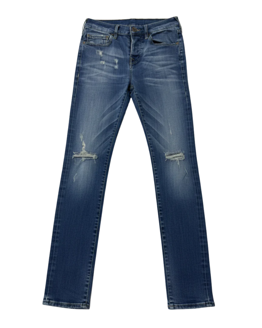 True Religion Blue Rocco Relaxed Skinny Distressed Jeans