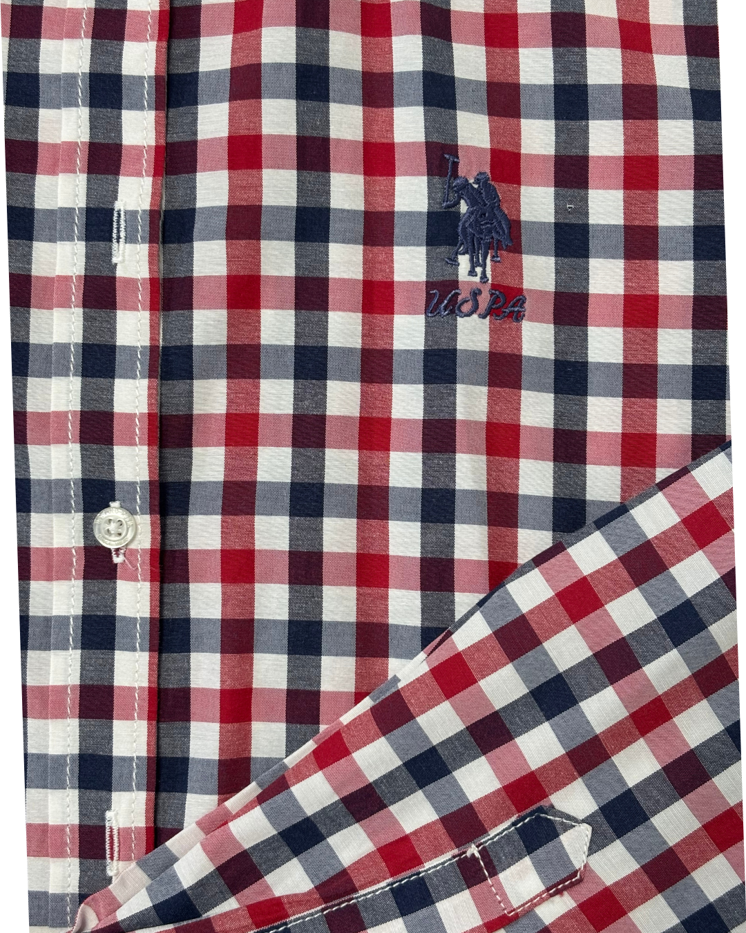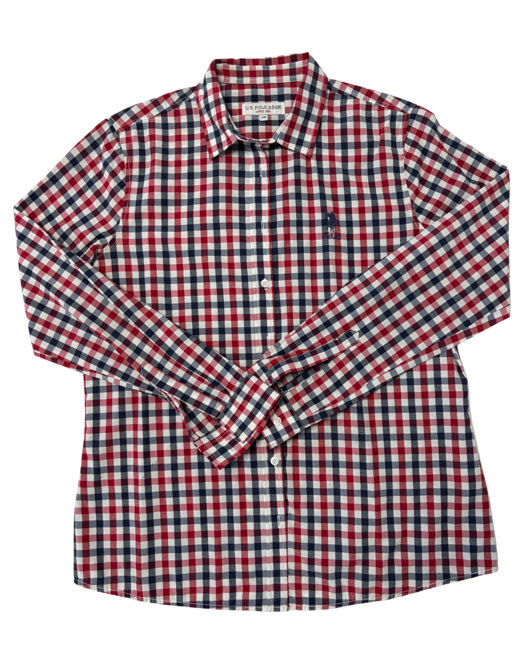 U.S. Polo Assn. Gingham Red Navy Blue & White Long Sleeve Shirt