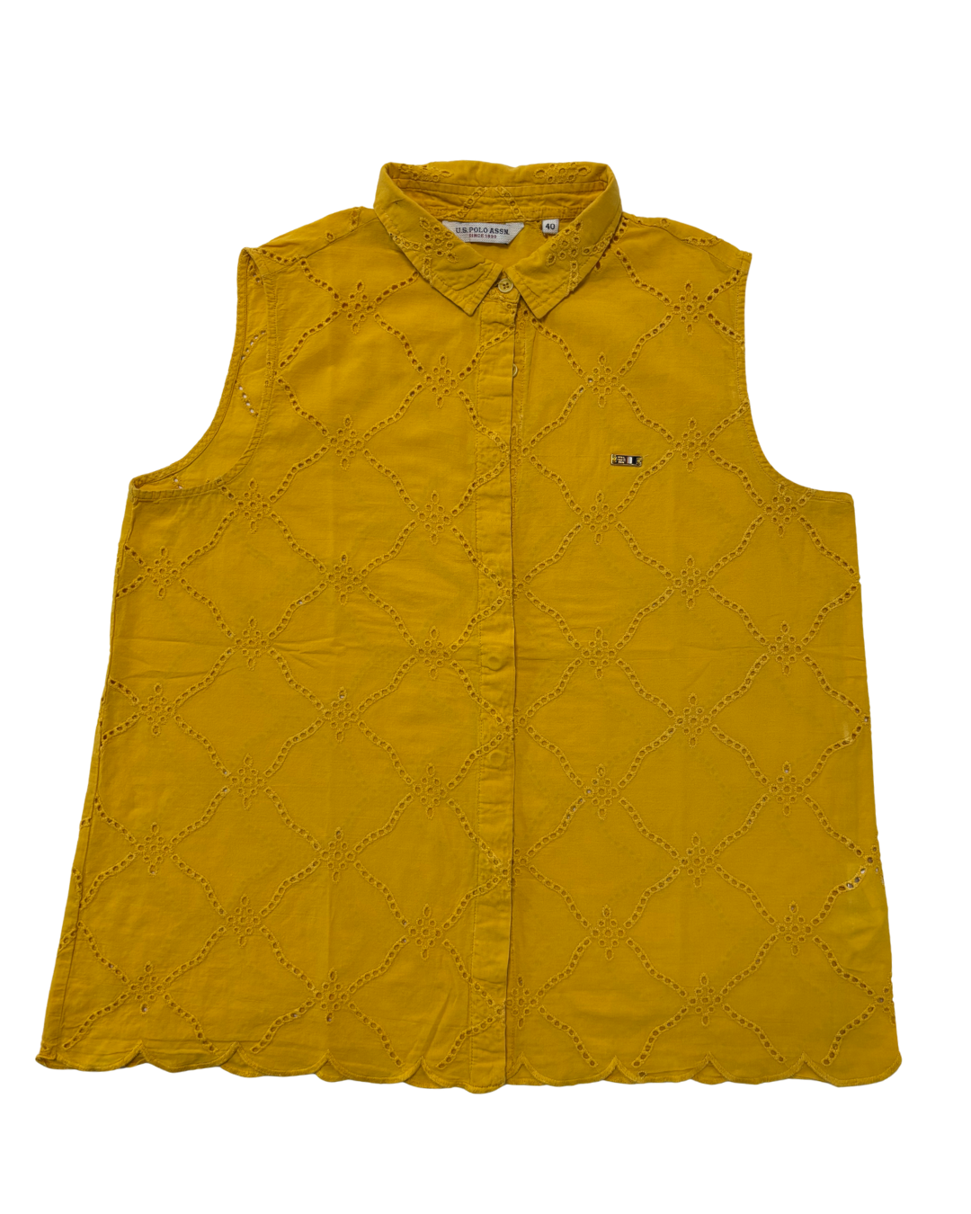 U.S. Polo Assn. Mustard Yellow Sleeveless Embroidered Cotton Shirt - L