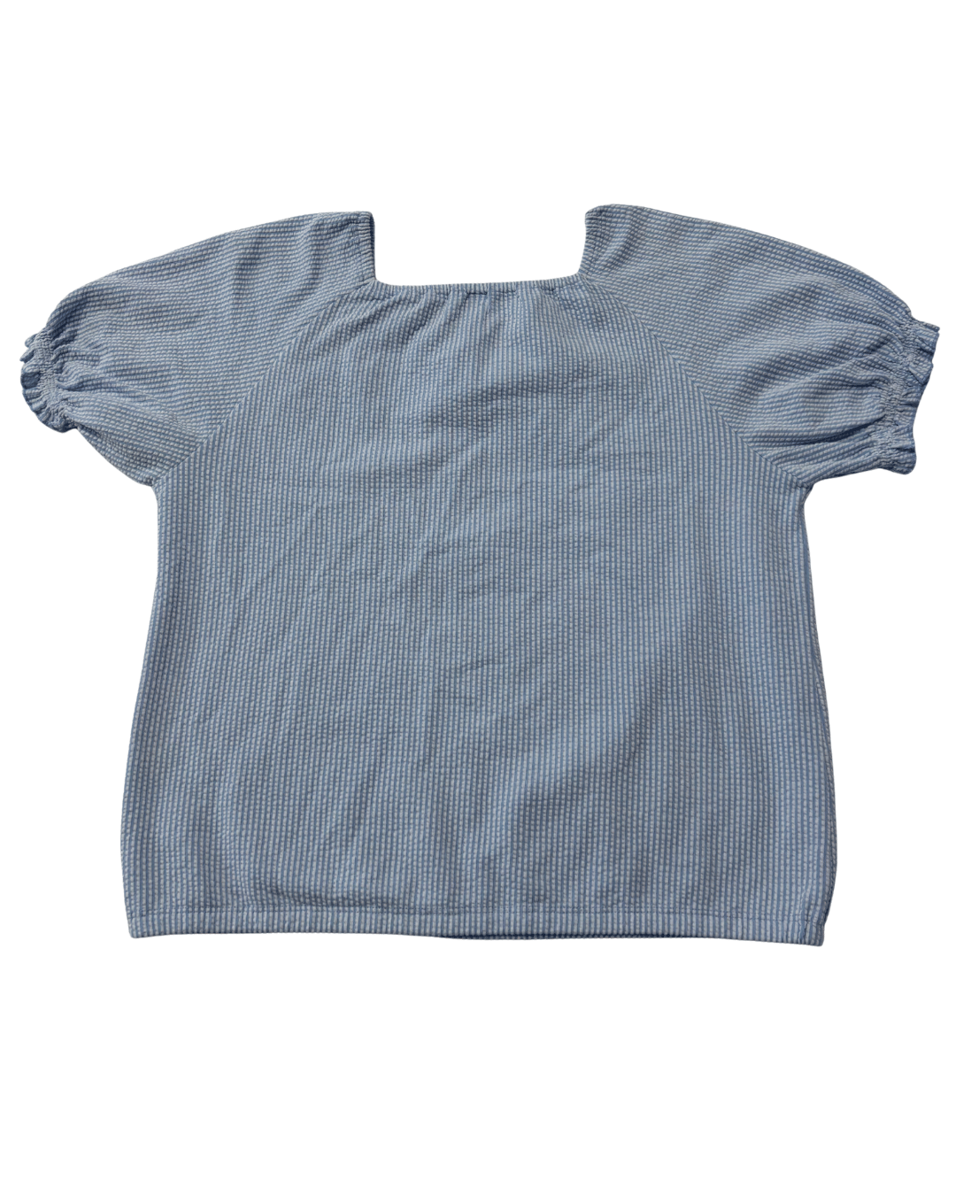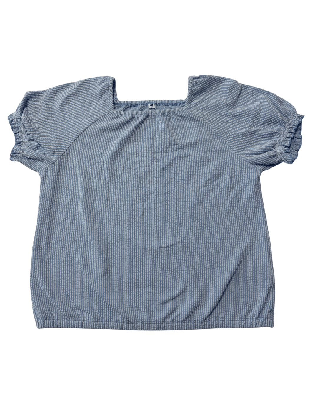 Uniqlo Seersucker Striped Puff Sleeve Square Neck Blouse
