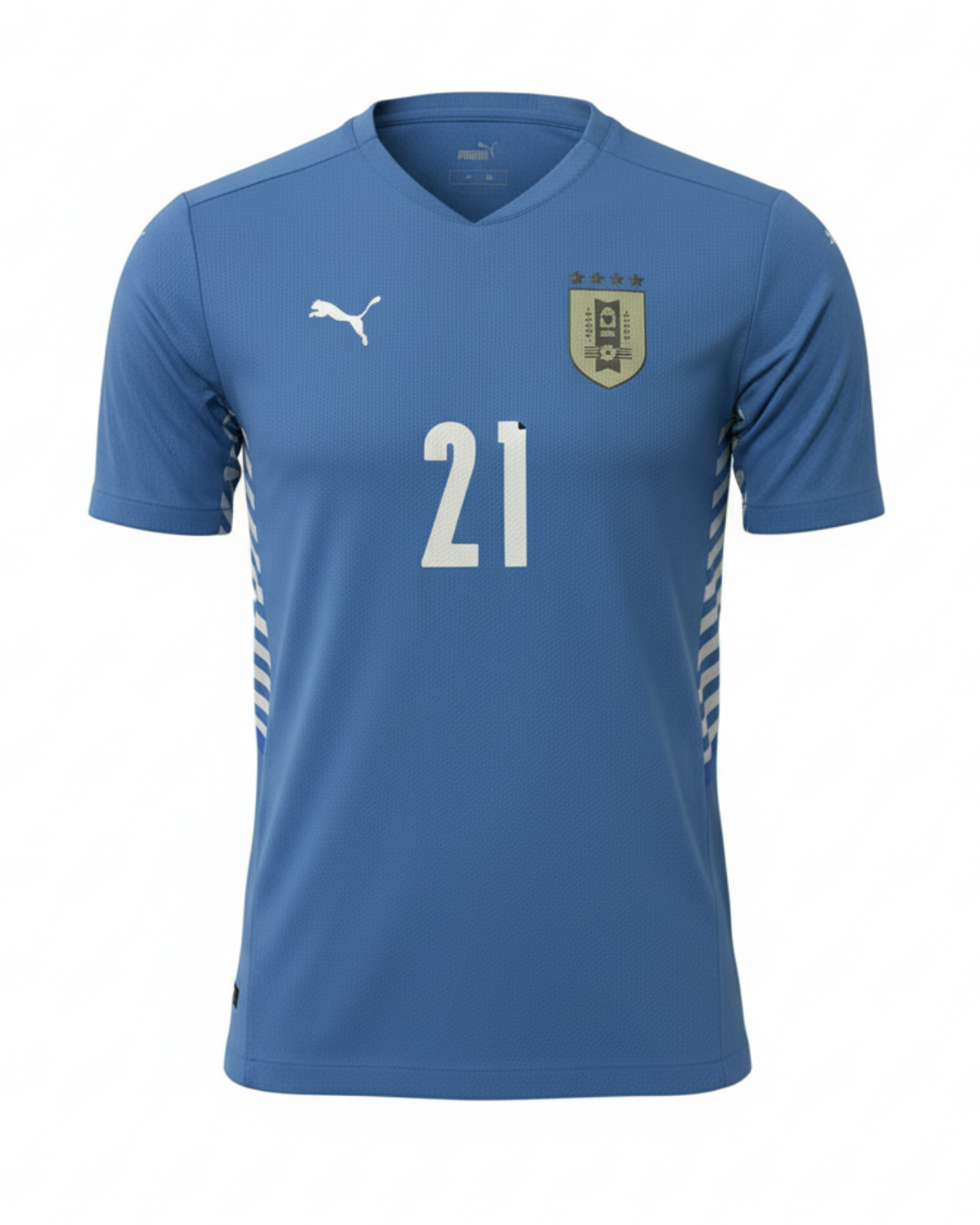 Represent La Celeste in this official Uruguay National Team home jersey by Puma, featuring Edinson Cavani’s #21 on the front... Read more