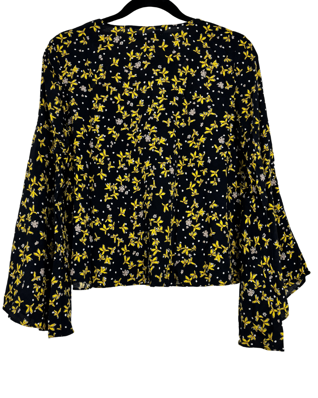 ZARA Basic Lace-Up Yellow Floral Bell Sleeve Blouse