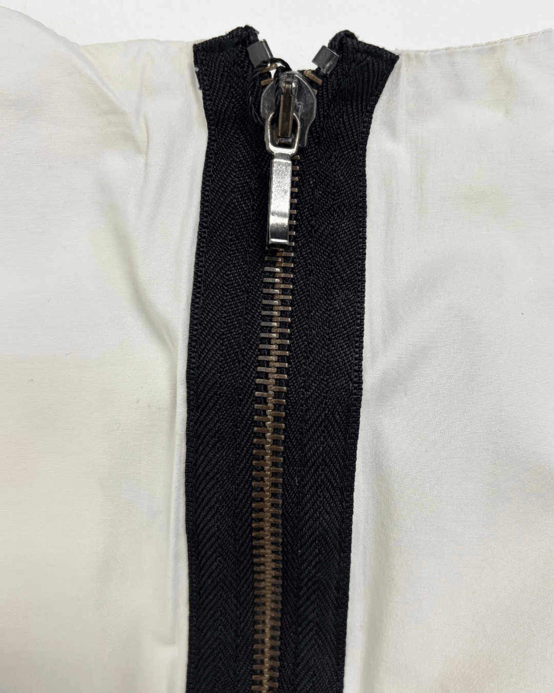 This Zara Basic sleeveless dress in crisp white features a modern tiered layer design and bold exposed black back zipper... Read more