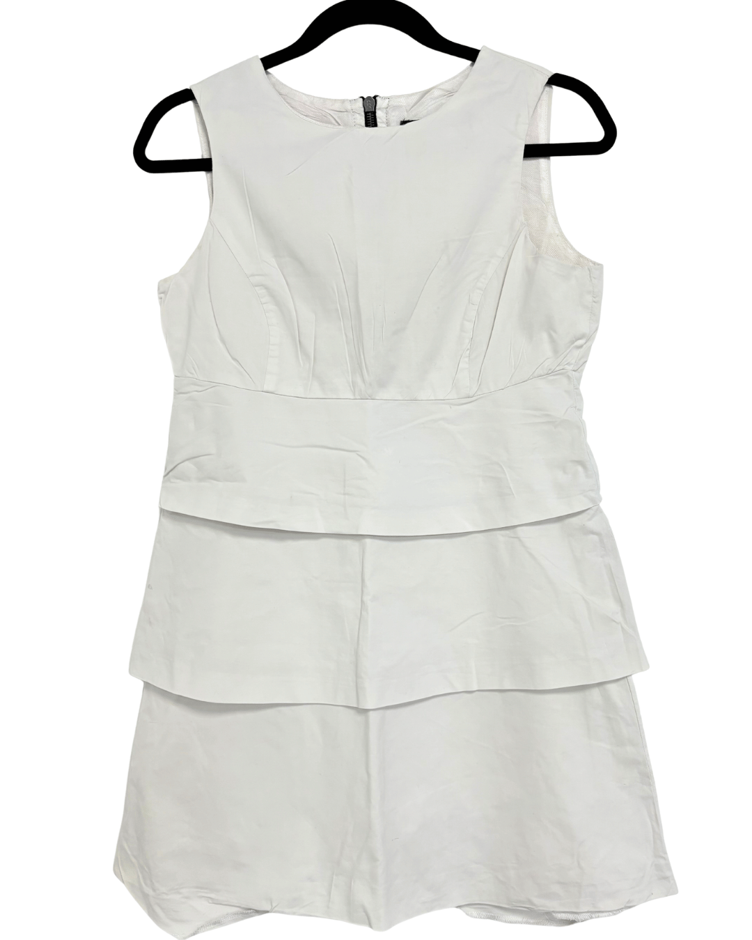 Zara Basic Layered White Sleeveless with Back Zipper Cotton Dress