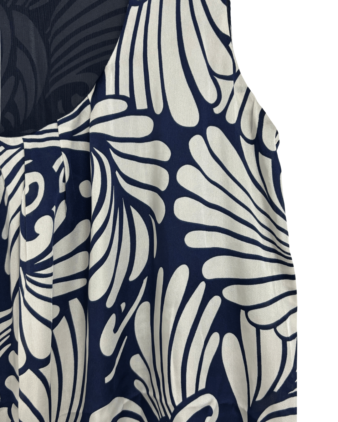 Zara Basic Navy & White Abstract Print Sleeveless Balloon Hem Dress