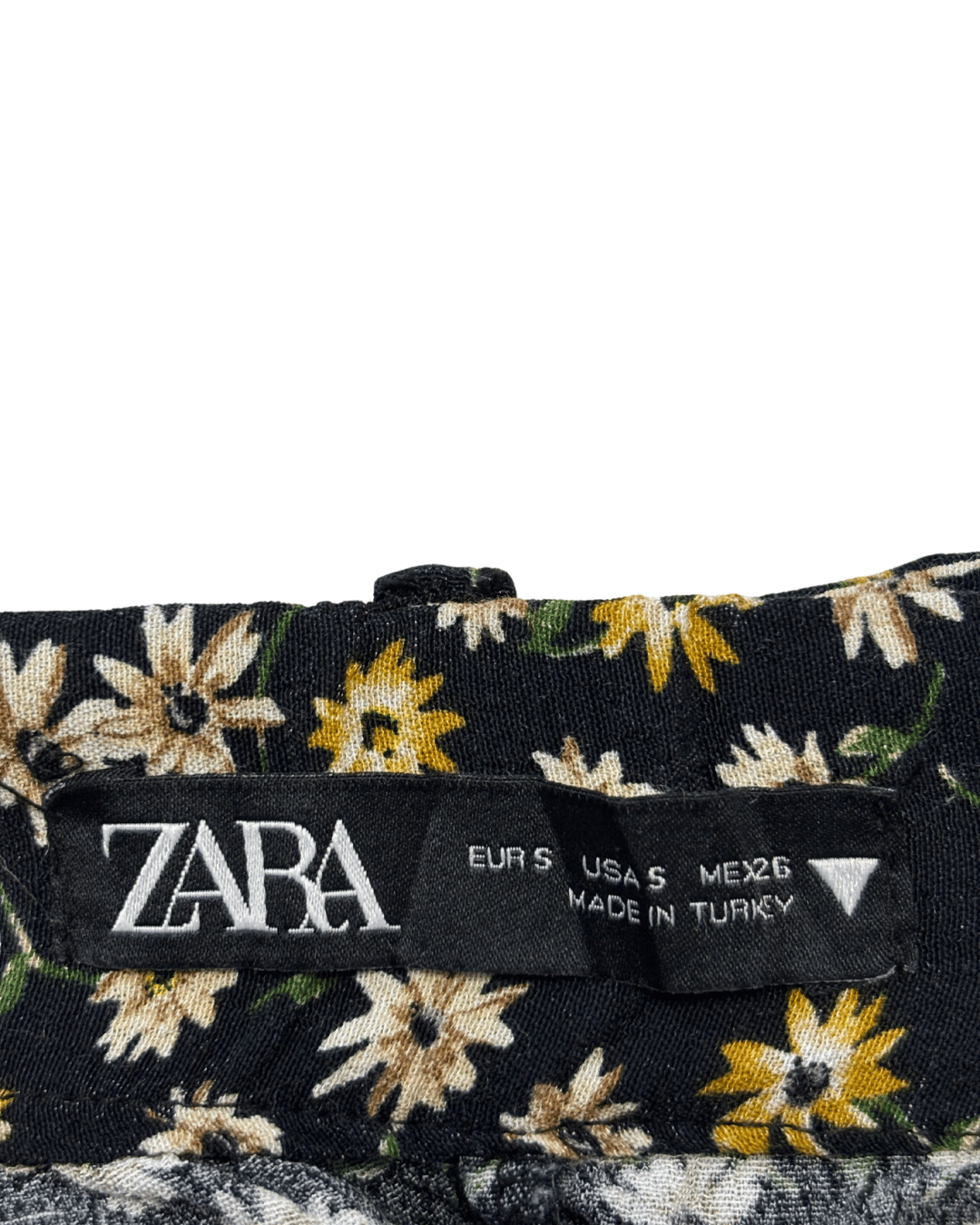 Zara Black Ditsy Floral High-Waist Culotte Pants