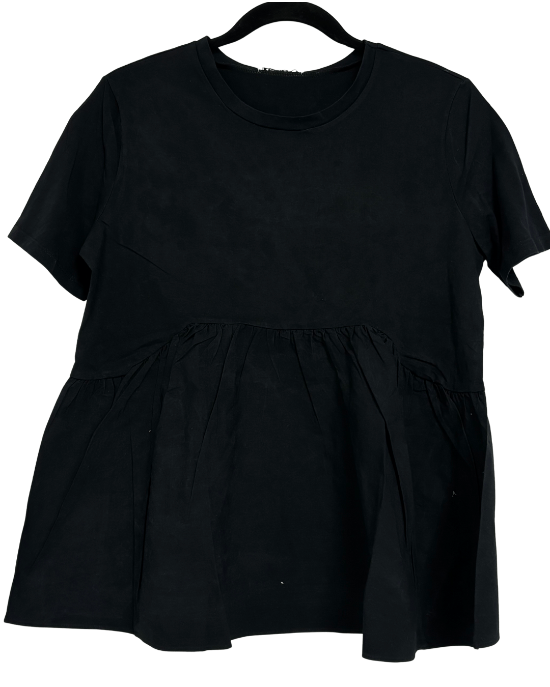 ZARA Black Short Sleeve Peplum Hem Knit T-Shirt
