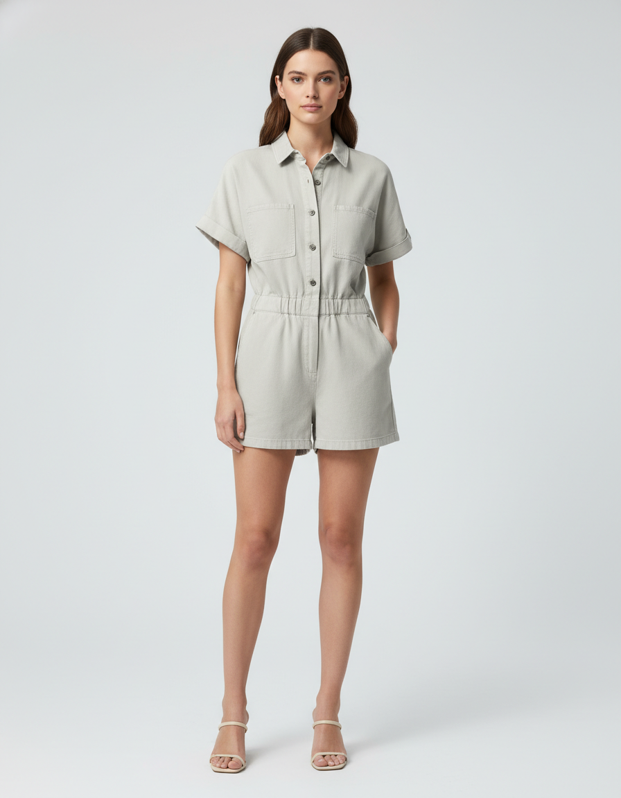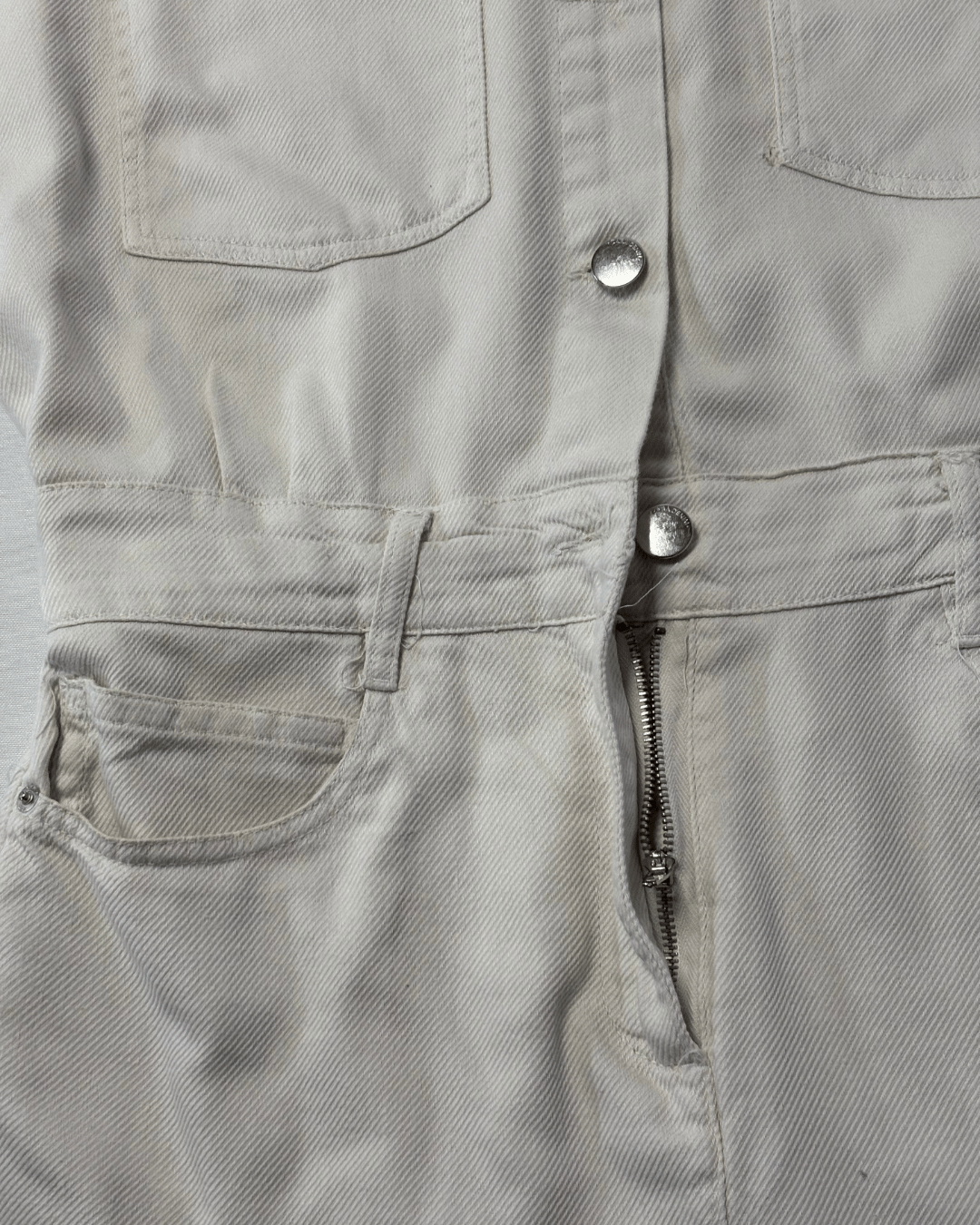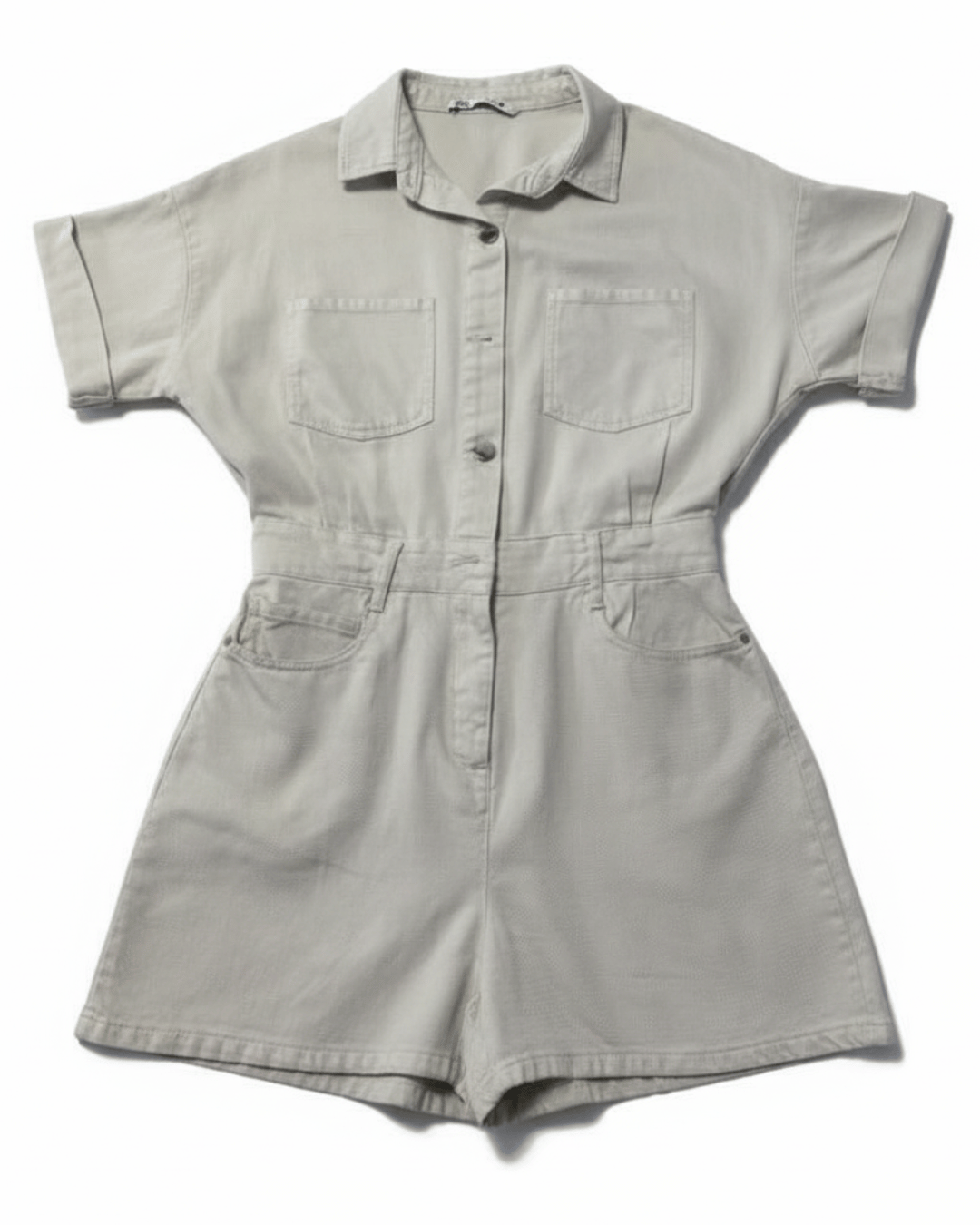 Zara Ecru Denim Utility Short Sleeve Romper Jumpsuit