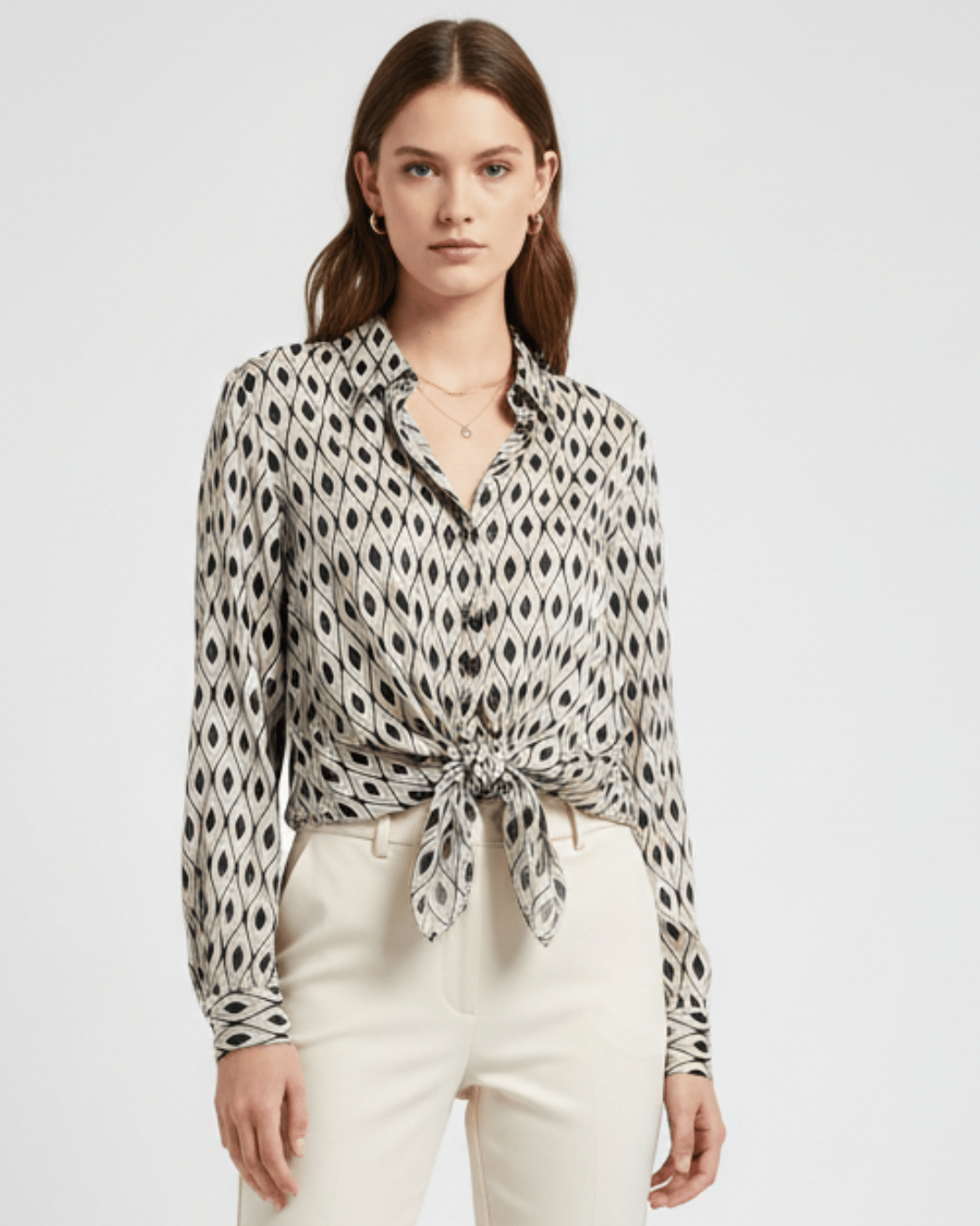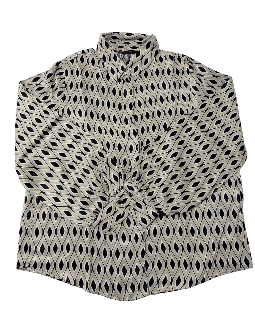 Zara Geometric Print Button-Down Shirt Black and Beige