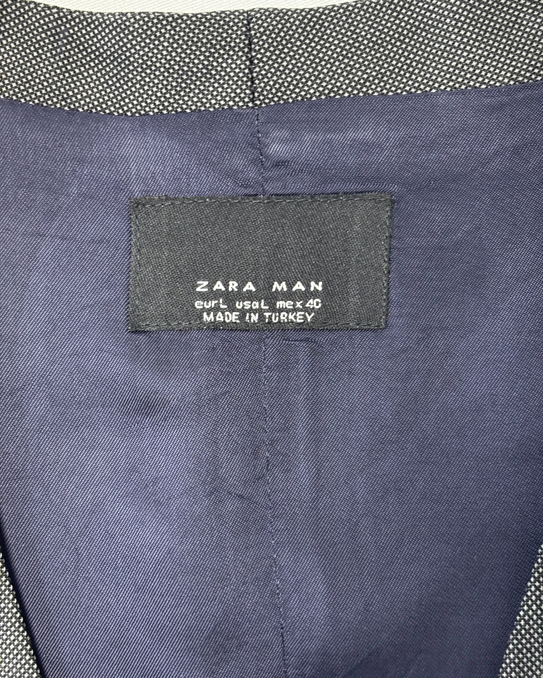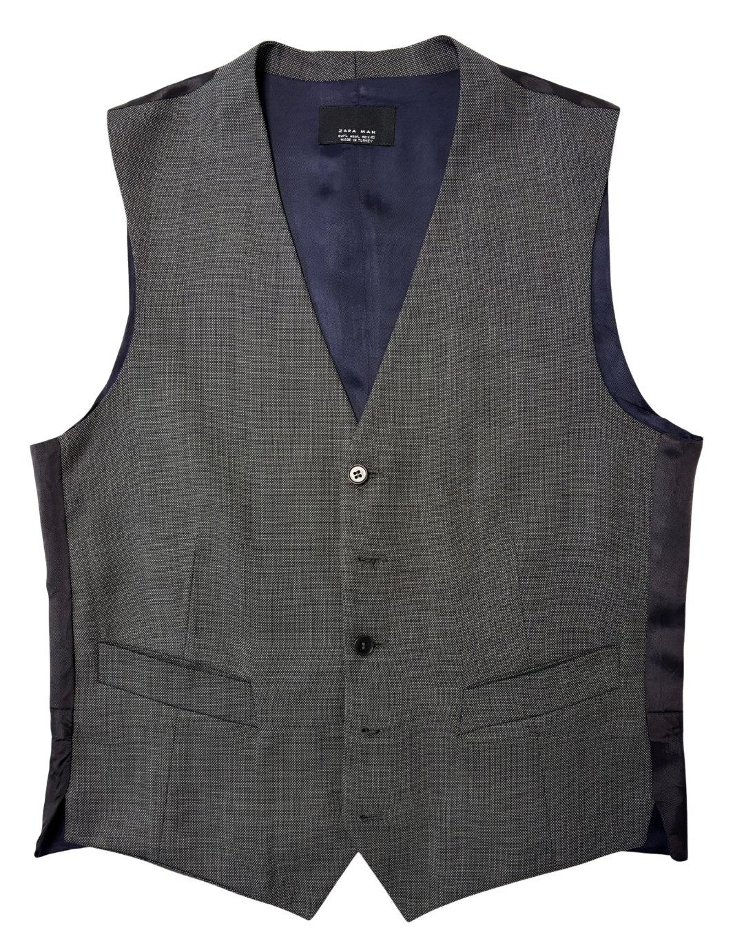 ZARA MAN Charcoal Grey Micro-Check Tailored Waistcoat