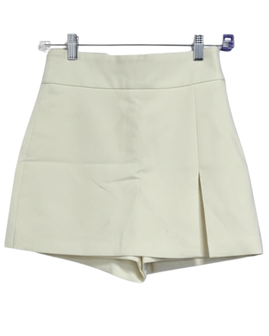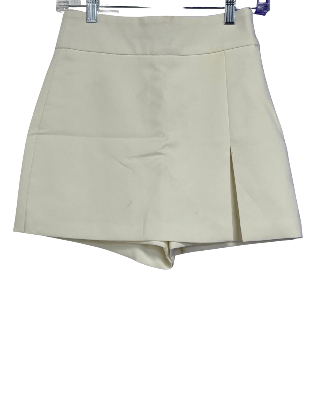 Zara White Asymmetrical Front Slit Tailored Mini Skort