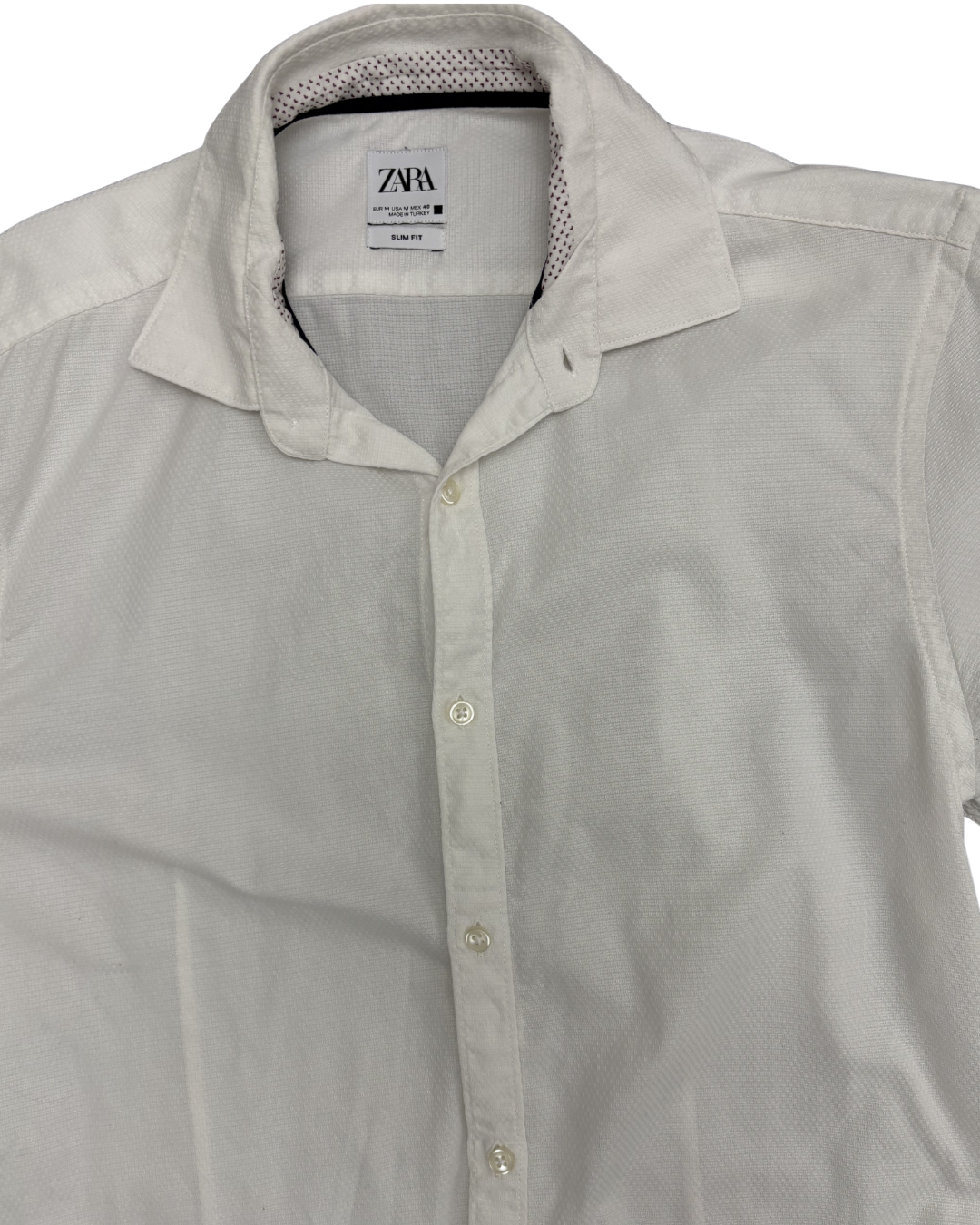 Sale -75% Product form ZARA White Slim Fit Patterned Dress Shirt - XS Measurements:Pit To Pit: 18Length: 28 Brand Size: M Dhs40.00 Dhs10.00 Quantity Add to cart Washed & Ready to WearFree shipping on all orders above 100 AEDNext day delivery